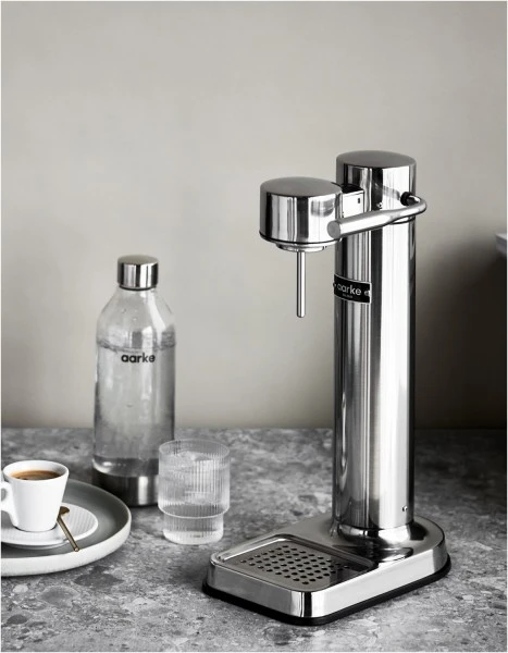 Die kultige Aarke-Flasche in ihrer neuen Form ist schlanker als je zuvor. Das Bodenstück der Flasche ist ebenfalls neu konstruiert und verfügt über einen Schraubmechanismus für erhöhte Haltbarkeit. Dank Trennmöglichkeit für Metall- und Kunststoffkomponenten kann die Flasche außerdem am Ende ihrer Lebensdauer recycelt werden. Die PET-Flasche ist nach wie vor BPA-frei und ungiftig und eignet sich für den Einsatz auf der Arbeitsplatte, am Esstisch sowie in der Tasche für unterwegs. Kompatibel mit CO2-Zylinder.