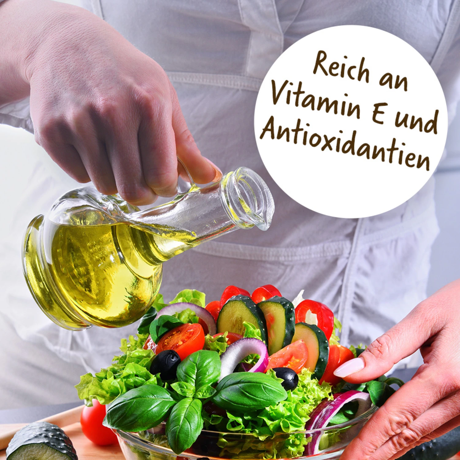 1 – 2 Teelöffel pro Tag direkt einnehmen oder wenige Tropfen auf Salate, Soßen, Fisch und Fleisch (auf fertige Speisen).