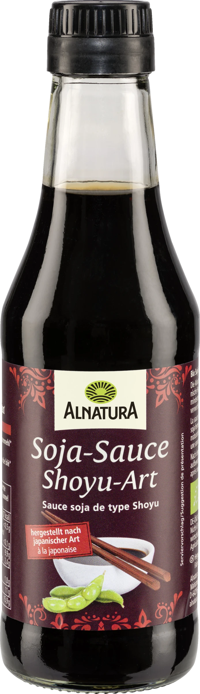 Die Alnatura Soja-Sauce wird durch die traditionell japanische Fermentation von Sojabohnen gewonnen. Durch die mindestens 5-monatige Reifung erhält sie ihren unverwechselbar würzigen und kräftigen Geschmack.