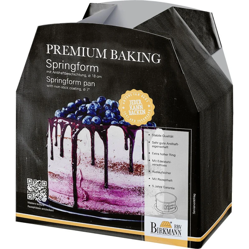 Die Springform der Premium Baking Kollektion hat einen auslaufsicheren, emaillierten Flachboden, ist schnitt- und kratzfest und lässt sich durch den Edelstahlverschluss komplett öffnen. Dadurch ist das Herauslösen des fertigen Backwerks und auch die anschließende Reinigung der Form schnell gemacht.