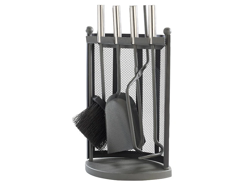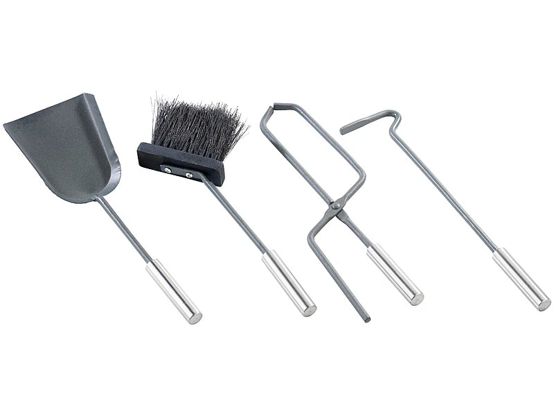 - 4-teiliges Kaminbesteck: Schaufel, Zange, Besen, Schürhaken