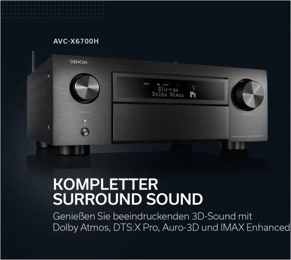 Mit Dolby Atmos, Dolby Atmos Height Virtualization Technology, DTS:X, DTS Virtual:X, DTS:X Pro, IMAX Enhanced und Auro-3D tauchen Sie in 3D-Audio ein. Erstellen Sie ein 7.1.4- oder 9.1.2-Dolby Atmos Surround System. Genießen Sie das ultimative Dolby-Heimkinoerlebnis mit Dolby Atmos-Upfiring-, Height- oder Overhead-Lautsprechern. DTS:X verleiht Ihren Filmen, Games und Musik einen unvergleichlichen Realismus, der traditionellen 5.1-Kanal-Surround-Sound bei Weitem übertrifft. Dolby Atmos Height Virtualization und DTS Virtual:X bieten fesselnden Klang ohne Height-Kanäle und erzeugt virtuelle 3D-Soundeffekte in einer 7.1-, 5.1- oder 2.1-Lautsprecheranordnung.