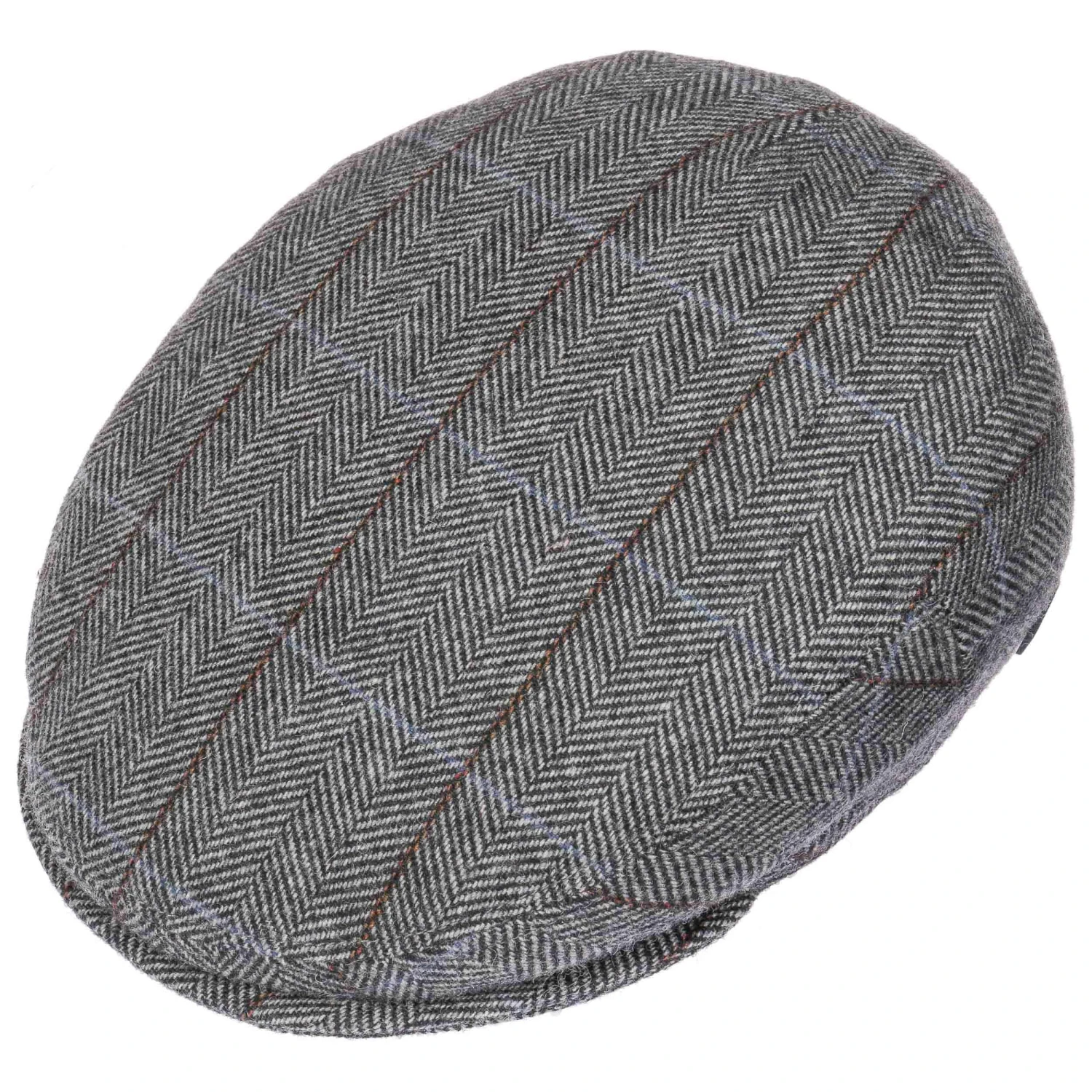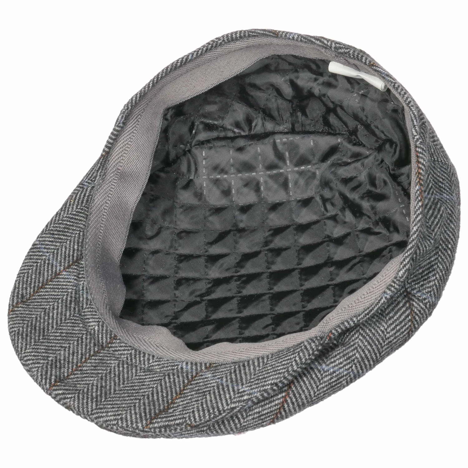 Die modern geschnittene Flatcap aus melierter Wolle von Lipodo besticht durch ein dezentes Karomuster und ihr gestepptes Innenfutter.