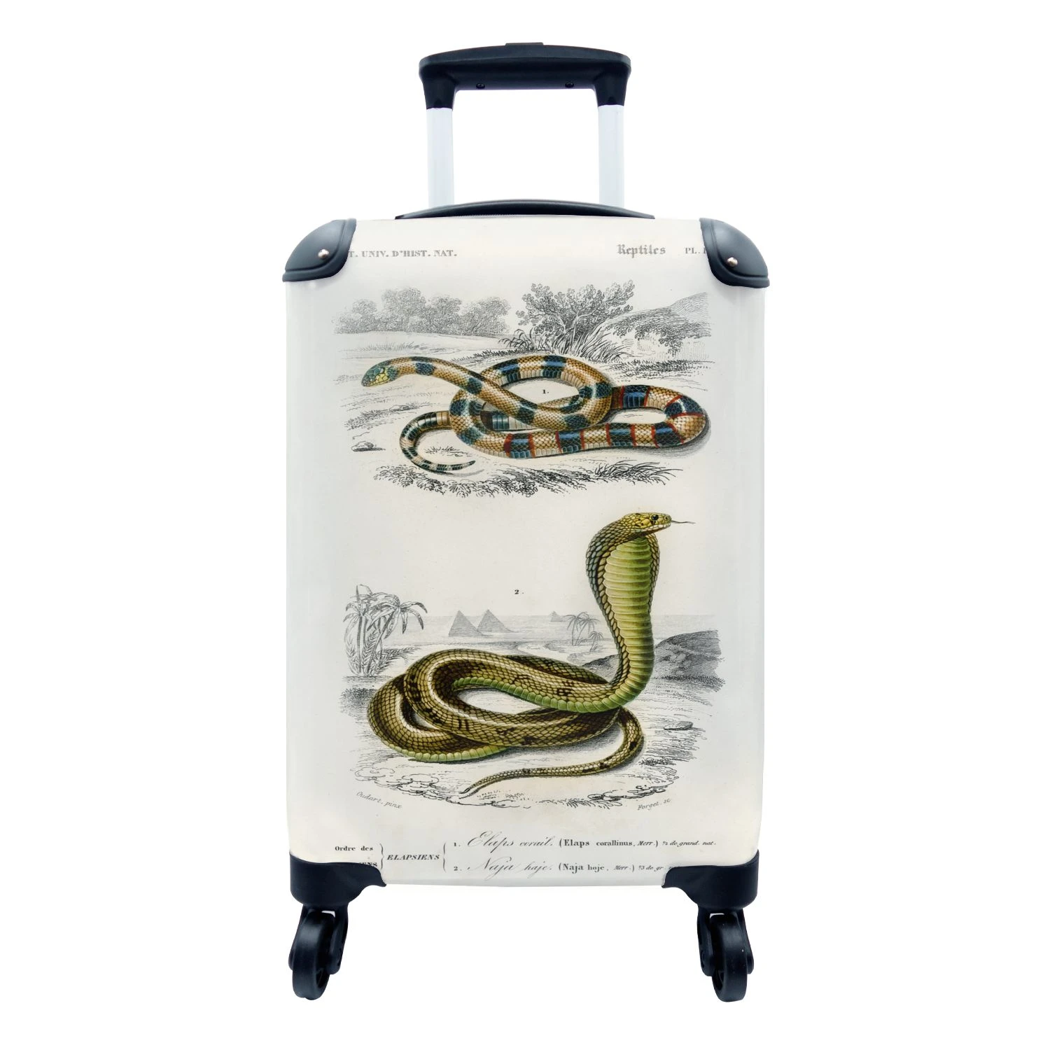 Kolorierte Darstellung einer ägyptischen Kobra und einer Korallenschlange.