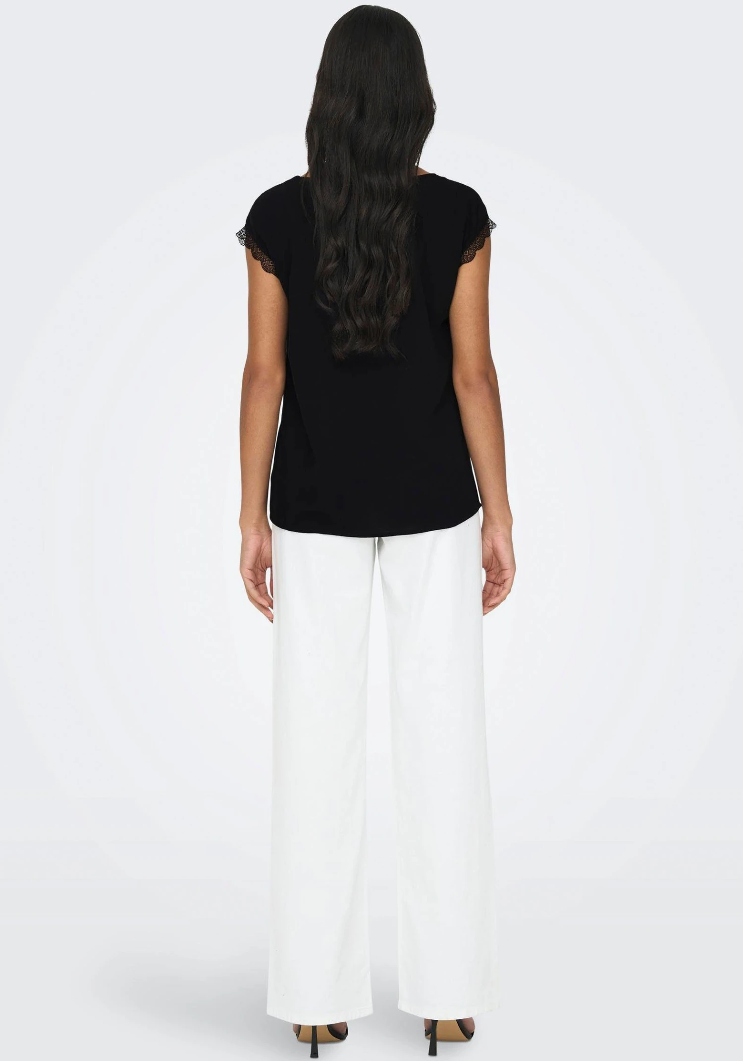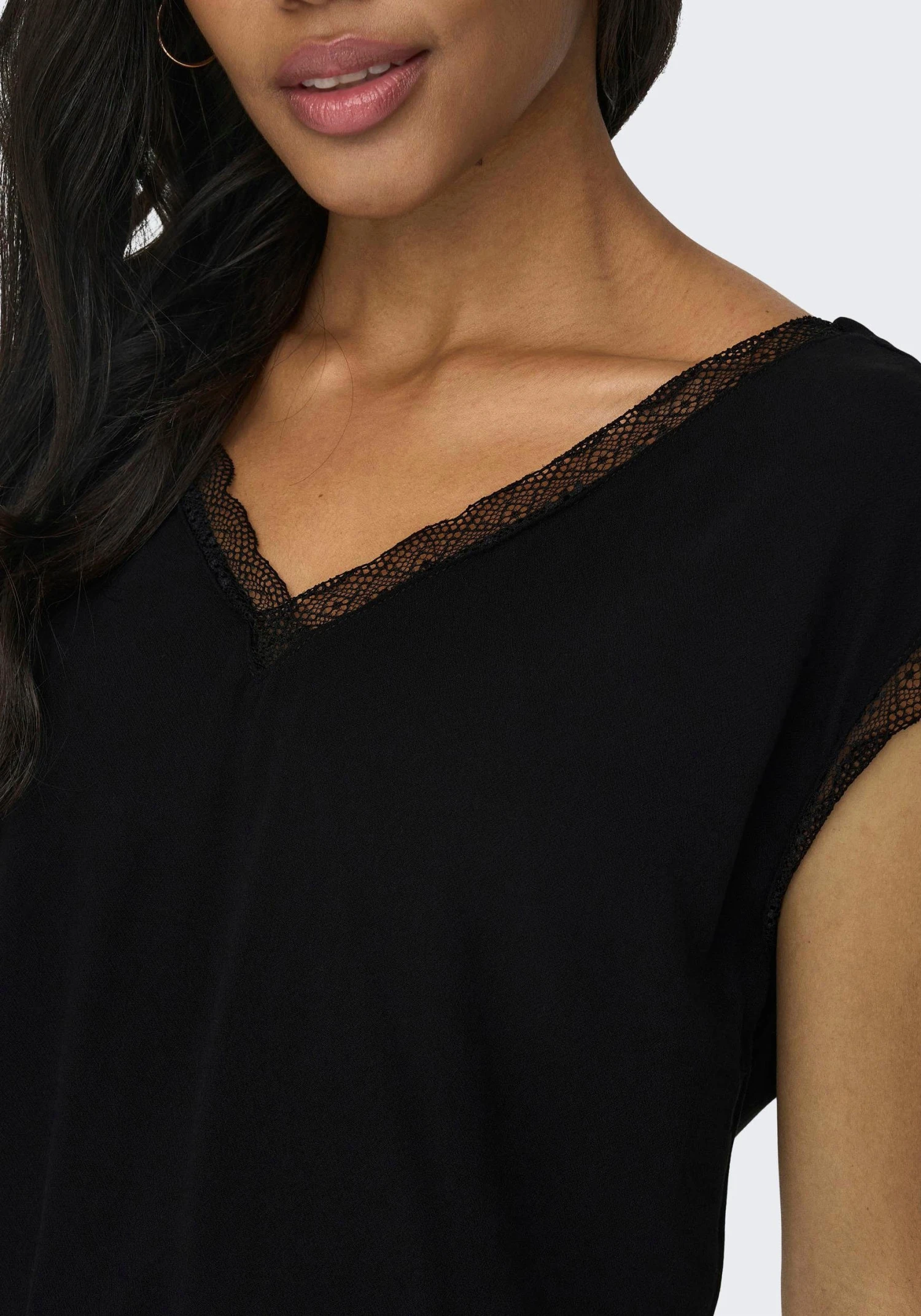 Mit dem V-Shirt von Only lassen sich schnell neue Styles zusammenstellen. Die kurzen Ärmel enden in einer Spitzenkante. Dieses Shirt hat einen V-Ausschnitt mit Spitze und ist basic geschnitten, sodass dein Oberkörper dezent in Szene gesetzt wird.