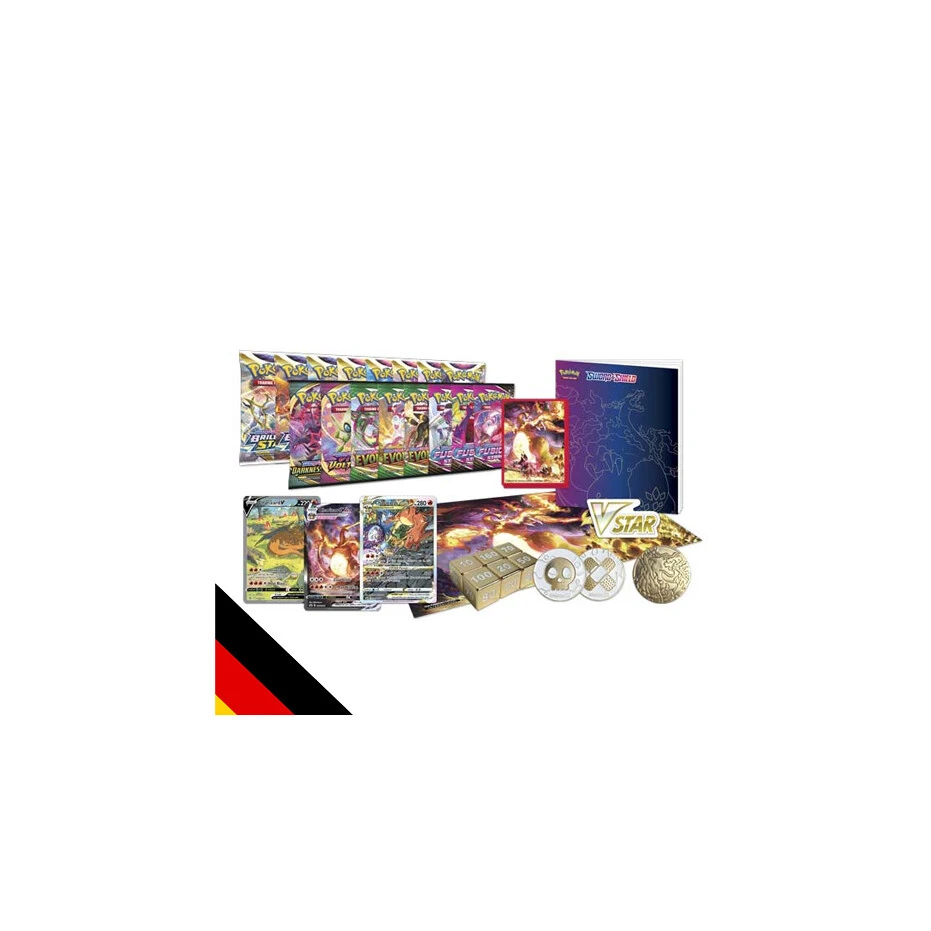 – 3 Geprägte Holo-Promo Karten: Glurak V, Glurak VMAX & Glurak VSTAR