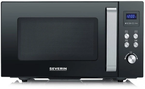 Das Mikrowellengerät hat ein Gewicht von 14,4 kg und ist 49,5 cm breit, 28,8 cm hoch und 41,5 cm tief. Links befindet sich der Türanschlag des Geräts. Ein Blick auf die Display-Anzeige reicht, um über alles informiert zu sein. Weil das Timing beim Kochen von großer Bedeutung ist, hat Severin die Elektronik-Uhr vorgesehen. Für mehr Sicherheit im Alltag sorgt die Kindersicherung. Geliefert wird das MW 7763 mit 1 Grillrost.