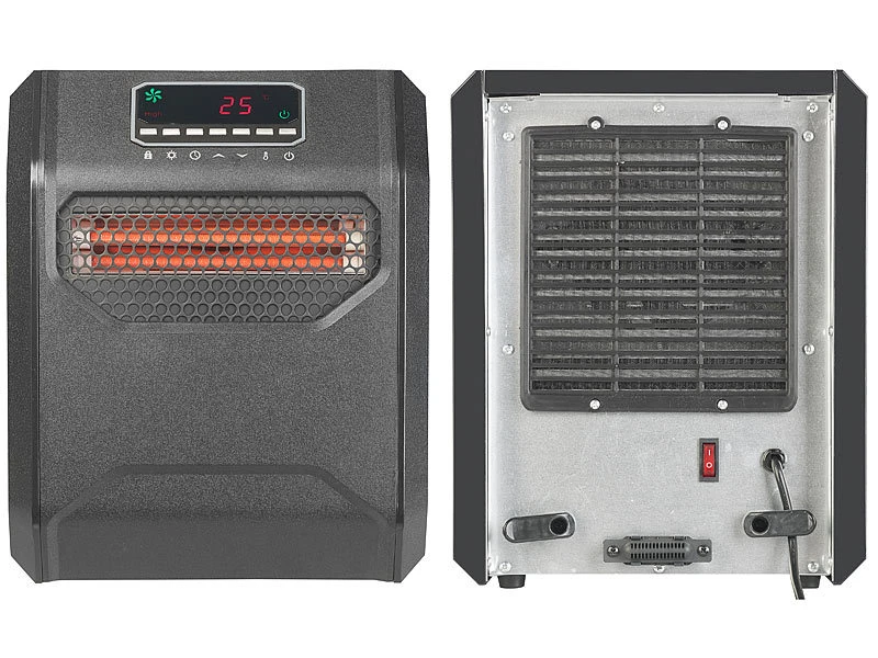 Heizt effektiv dank Infrarot und Ventilator: Denn die Wärme trifft direkt Ihren Körper, anstatt nur die Umgebungsluft aufzuheizen. Der Ventilator verteilt die Wärme gleichzeitig im ganzen Raum. Dank 6 starker Heizröhren und Thermostat erreichen Sie schnell und gezielt die ideale Raumtemperatur.