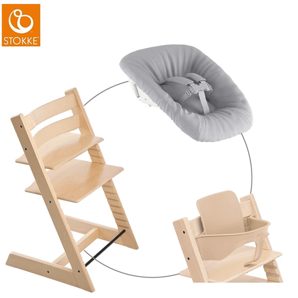 STOKKE® Mega Tripp Trapp® Set Hochstuhl Buche natur inkl. Newborn Set™ Grey und Baby Set natur